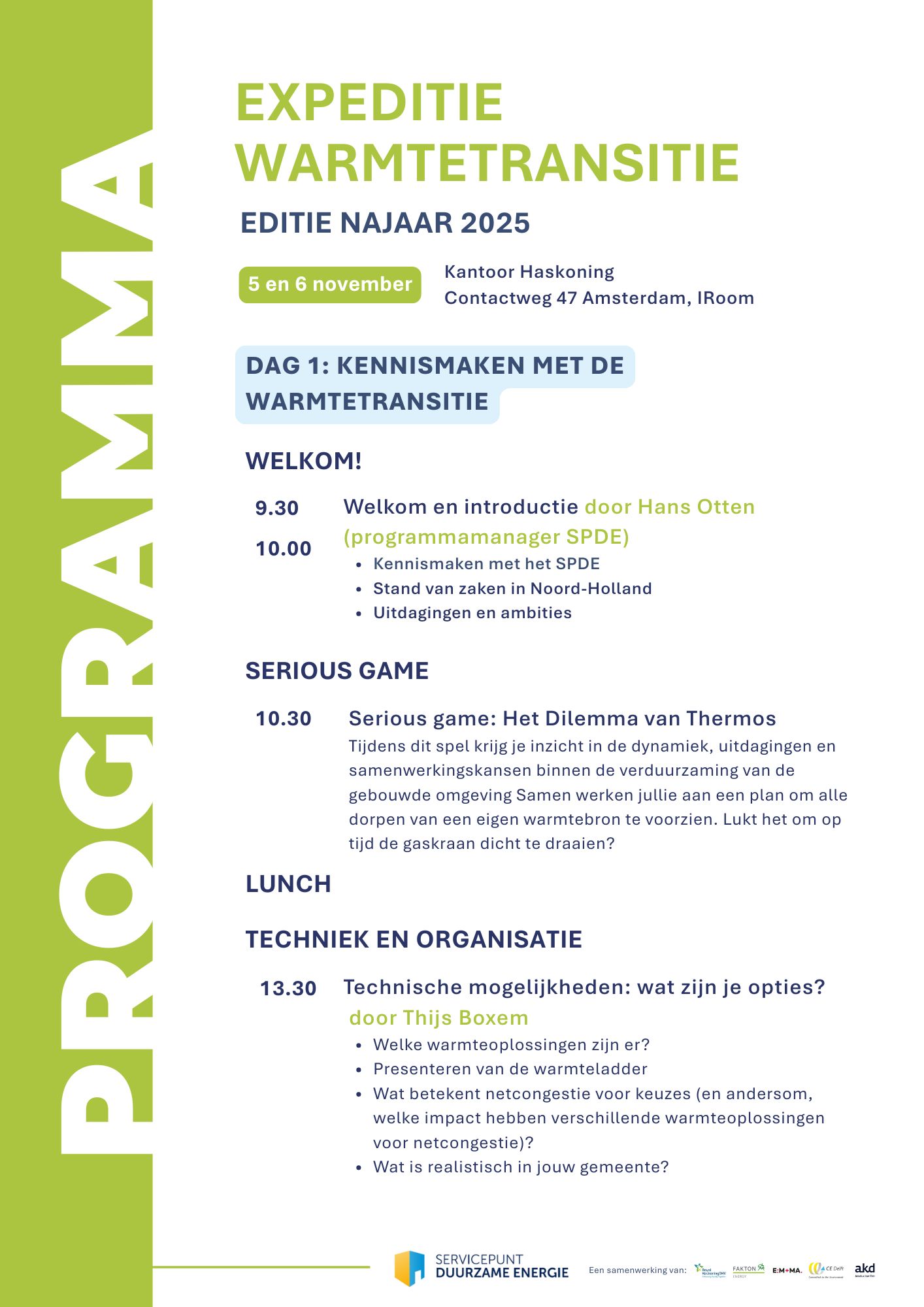 Met o.a. de serious game Het Dilemma van Thermos en inhoudelijke sessies over de opgave en techniek, de beleidskaders en jouw rol vanuit de gemeente.