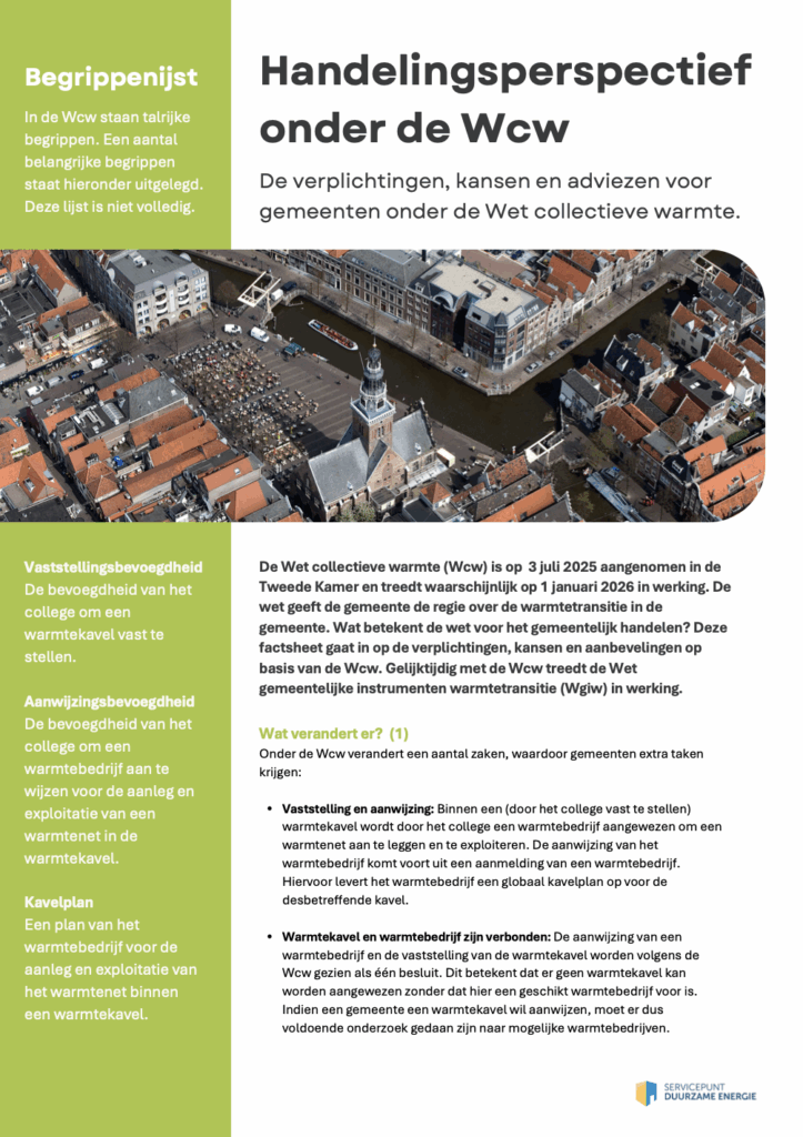 Factsheet Handelingssperspectief onder de Wcw Factsheet en flyer: Handelingssperspectief onder de Wcw De Wet collectieve warmte (Wcw) is op 3…Art Frieso17 september, 2025